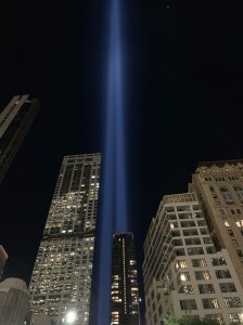 What everyone had in common (other than a mask) was where they were, and how fortunate they were to be there. There was a magnetism that pulled most south toward the Freedom Tower, and, as dusk was upon us, those two magnificent beams that marked the original two towers of the World Trade Center.